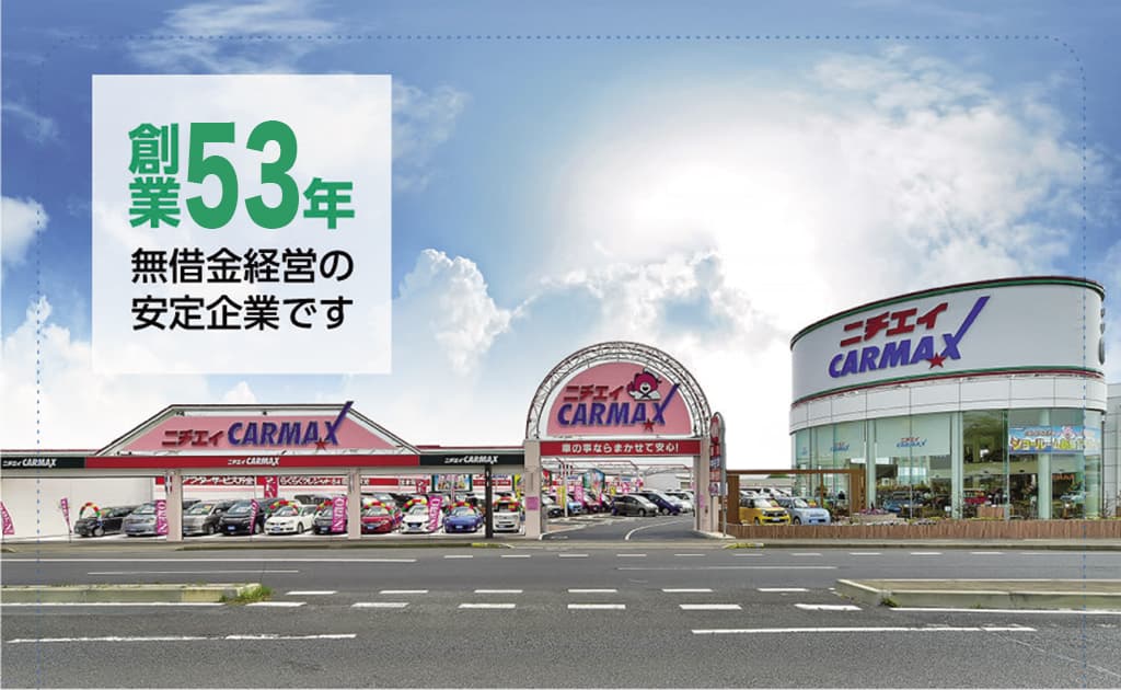 当社は、柏本店・取手支店・守谷支店と大型3店舗3工場を有し、地域のお客様と共に『創業53年』の歴史を誇る『総合カーディーラー』です。